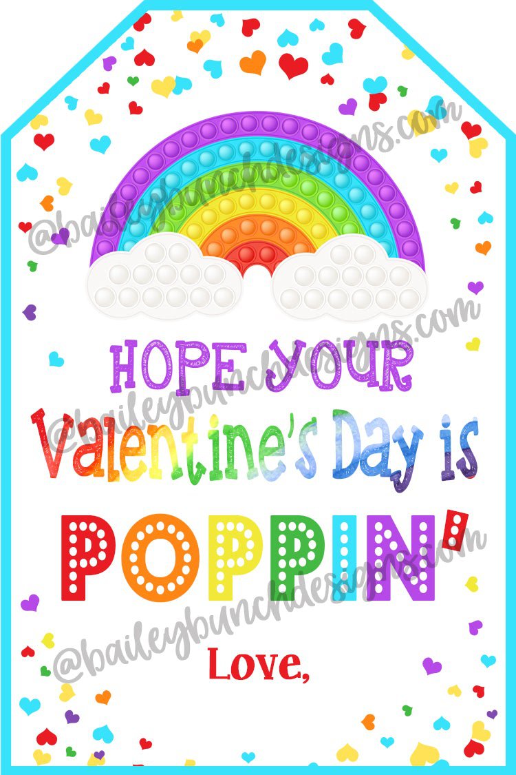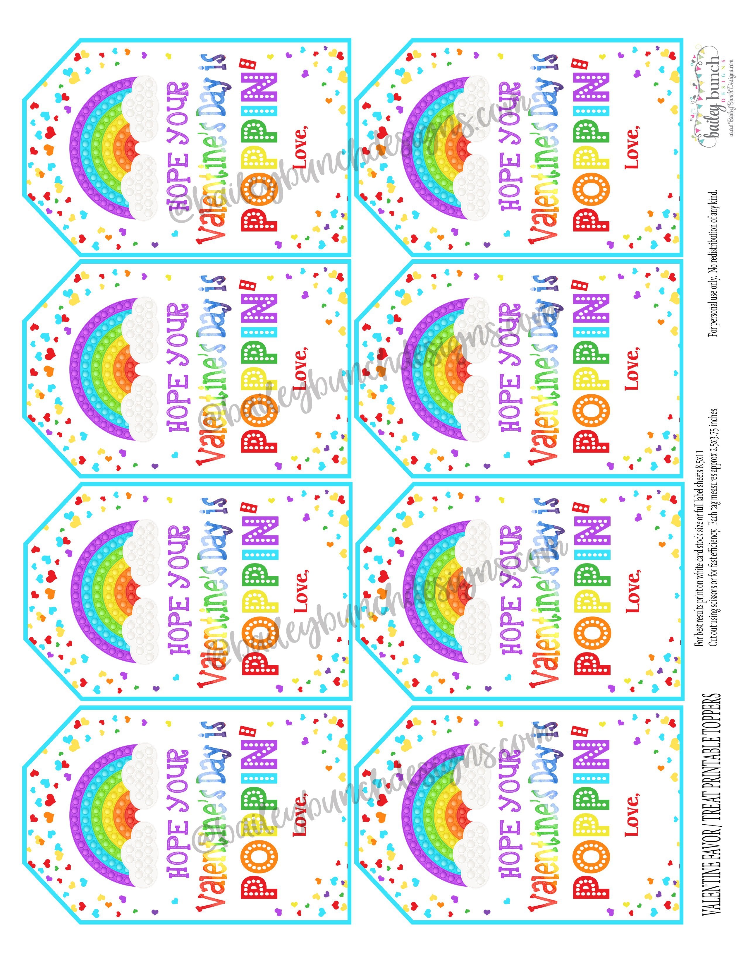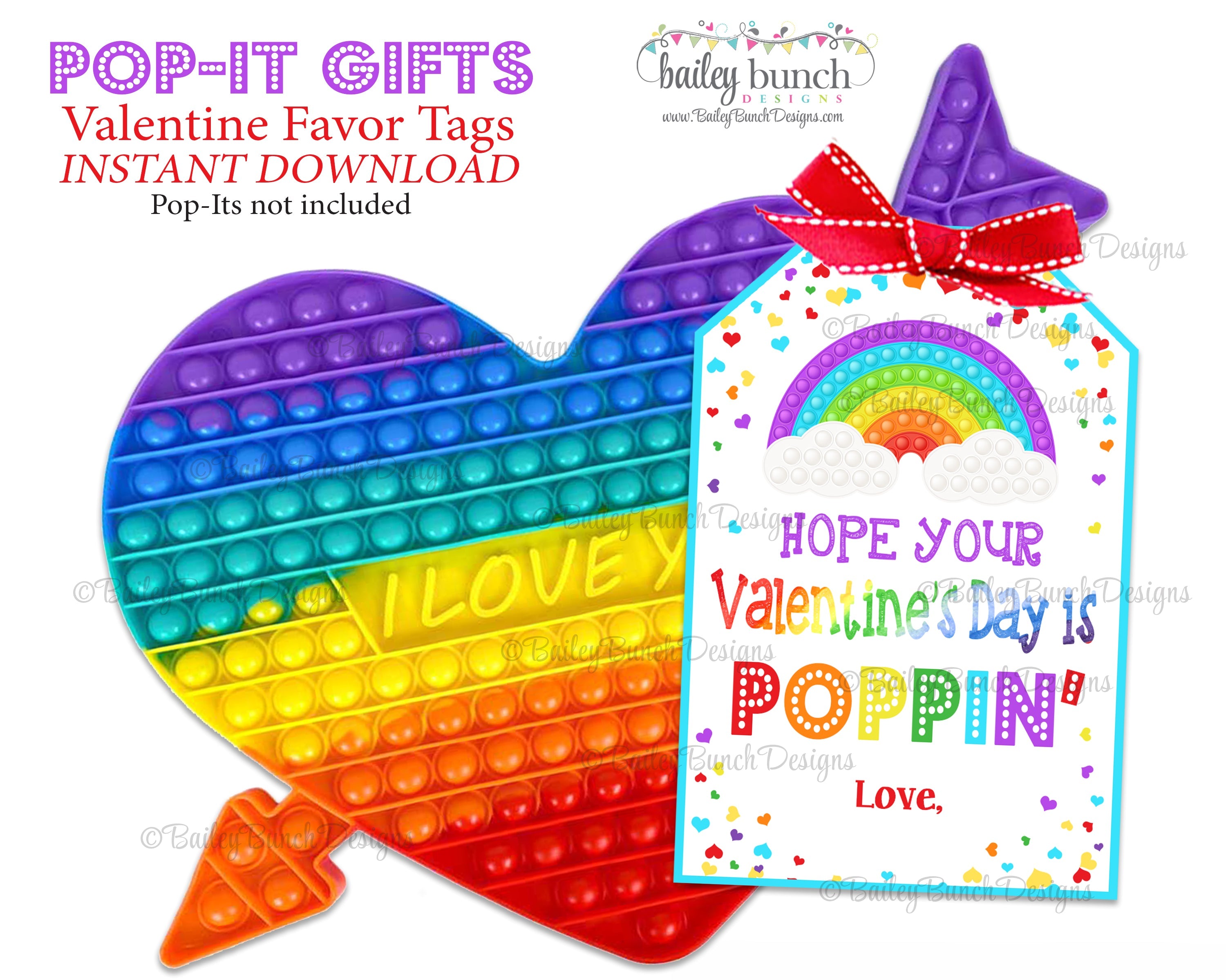 Valentine RAINBOW Pop It Fidget Gift Tags, Valentines Gifts, Rainbow Valentine TAGS - Hope your valentines day is poppin' - INSTANT DOWNLOAD