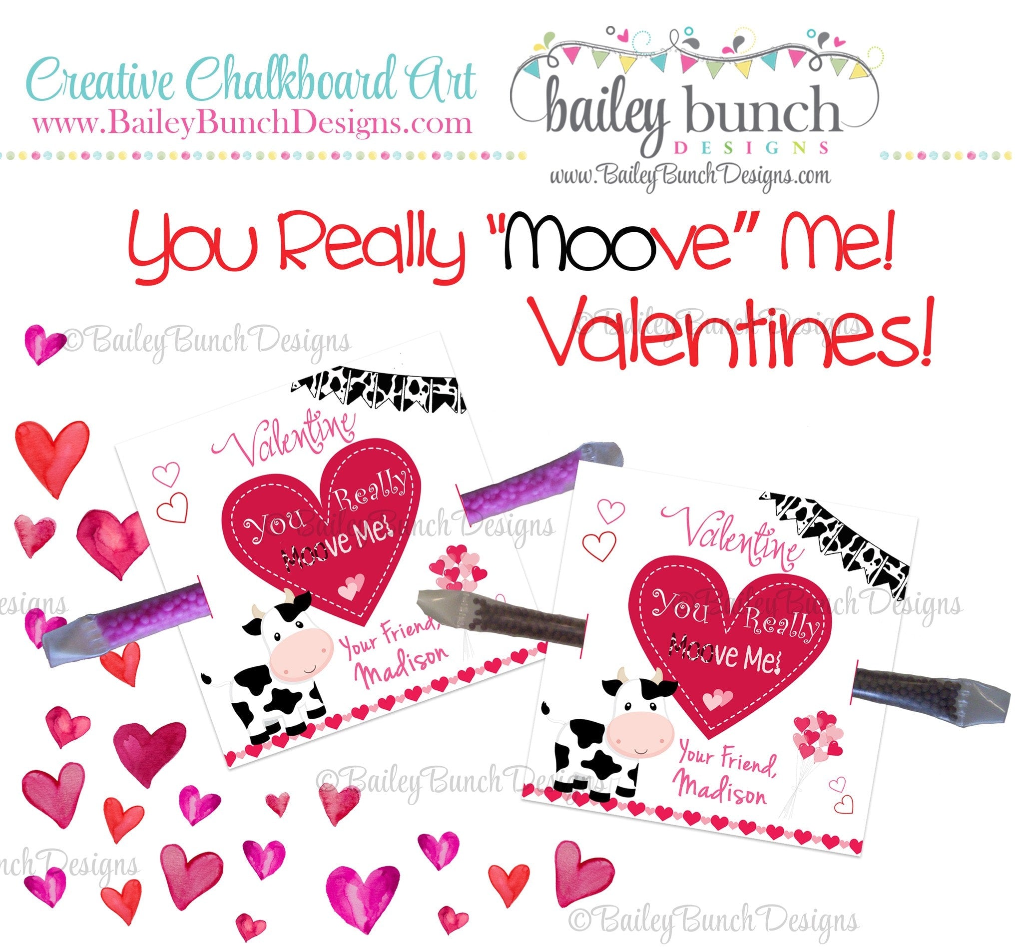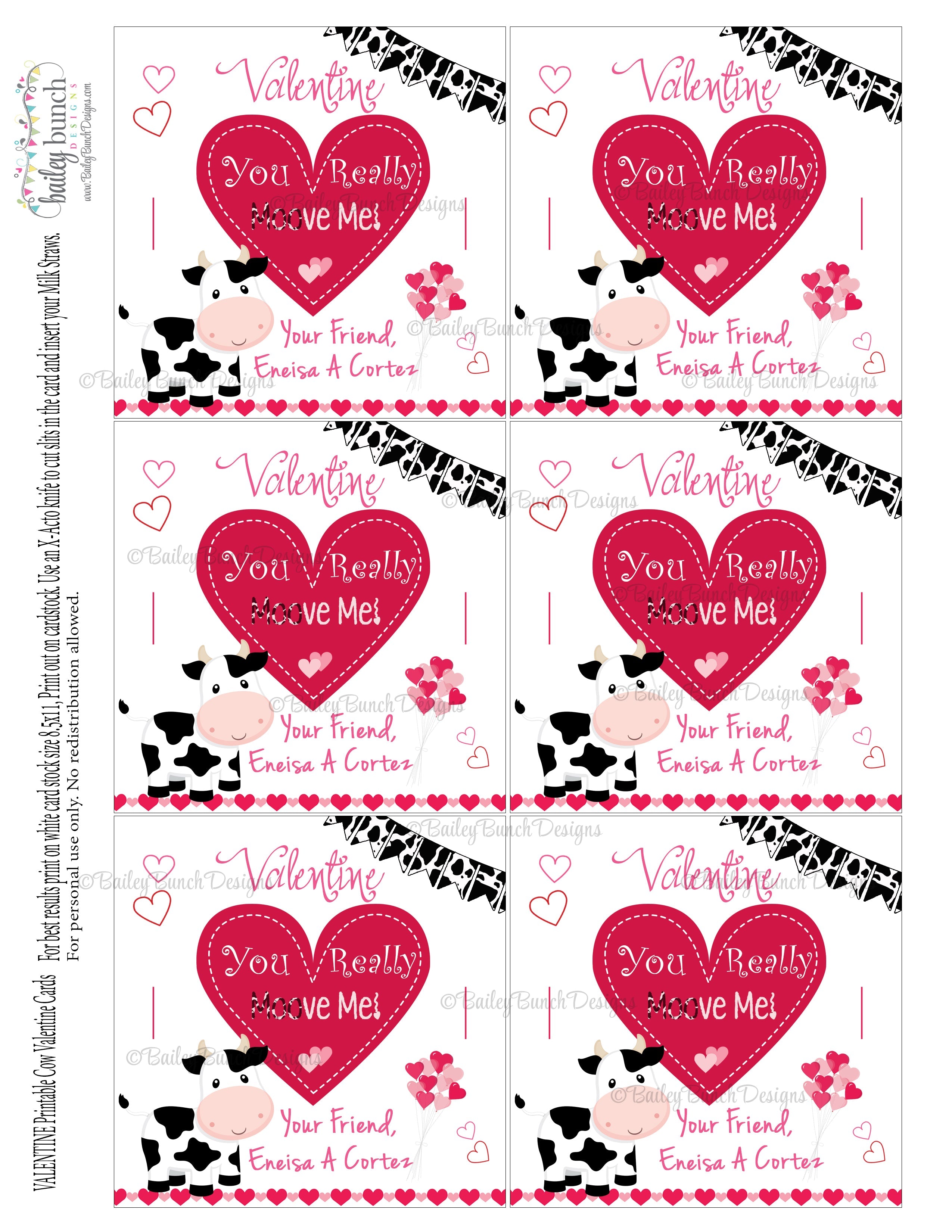 You Really "Moo"ve Me Cow Treat Bag Toppers, Valentines - 2 DESIGNS!!